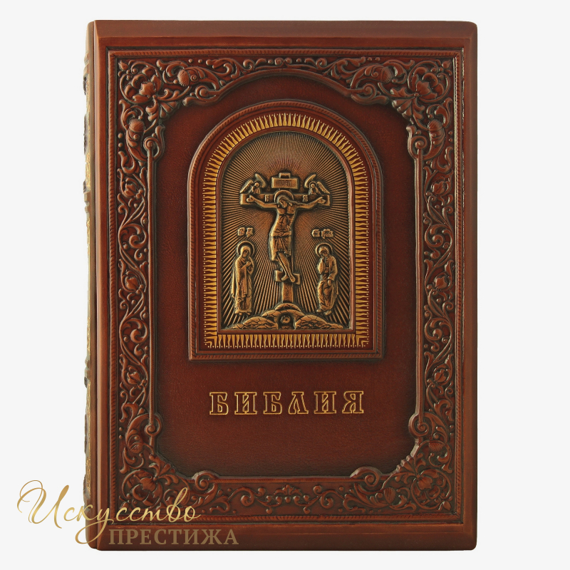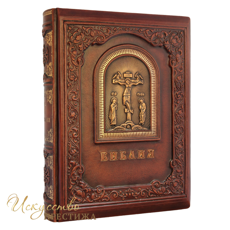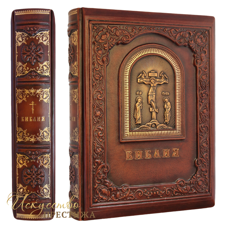 Кожаная Библия с гравюрами Гюстава Доре. Переплет ручной работы из натуральной кожи. Конгревное тиснение (барельеф на коже) библейских сюжетов и тиснение позолоченной фольгой. Тонировка кожи.