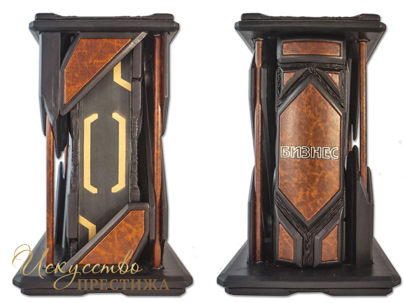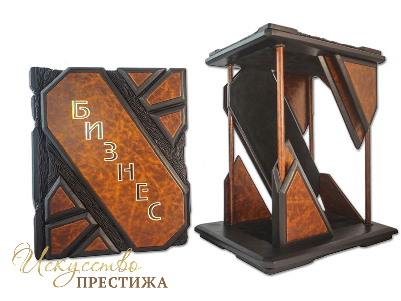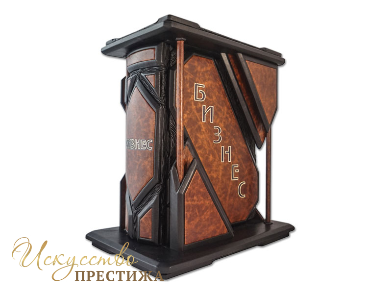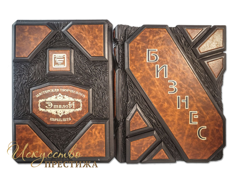 Французский составной переплет ручной работы изготовлен из комбинации натуральных кож (Кожа теленка «Marone zegna», Кожа «Strutta crepa» производства итальянской кожевенной фабрики «Motta Alfredo»). Обложка книги и футляр уникальной авторской архитектуры оформлены высоким рельефом, объемной помятостью кожи и декорированы золотым тиснением (использована фольга «Luxor 240»). Обрез книги вручную полирован и декорирован комбинацией сусального золота и черной фольги. Подарочный футляр устлан итальянским коттон-бархатом.