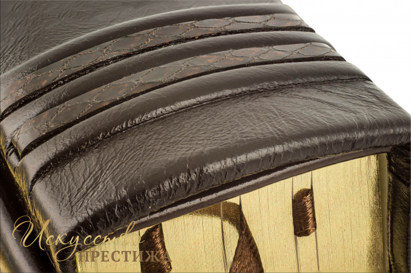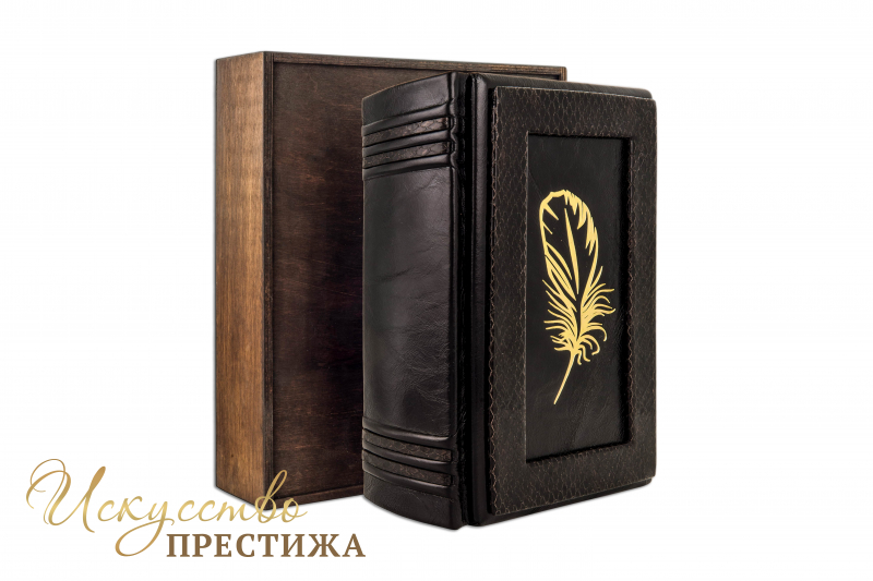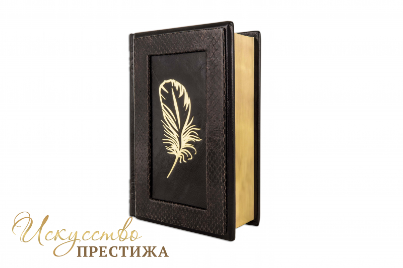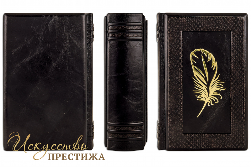 Французский переплет ручной работы изготовлен из комбинации натуральных кож (Кожа телячья «GRASH», Кожа морской змеи, производства ведущих итальянских фабрик). Обложка книги оформлена рельефным золотым тиснением.