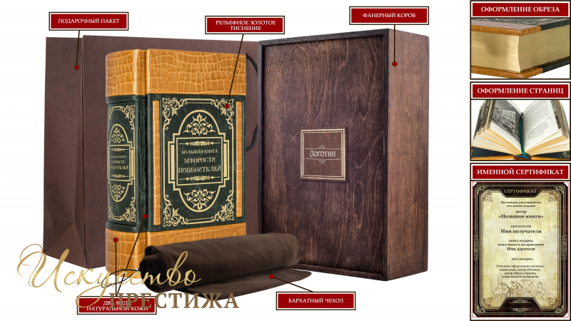 кожевенной фабрики «Benericetti». Обложка книги двухуровневая, оформлена рельефным