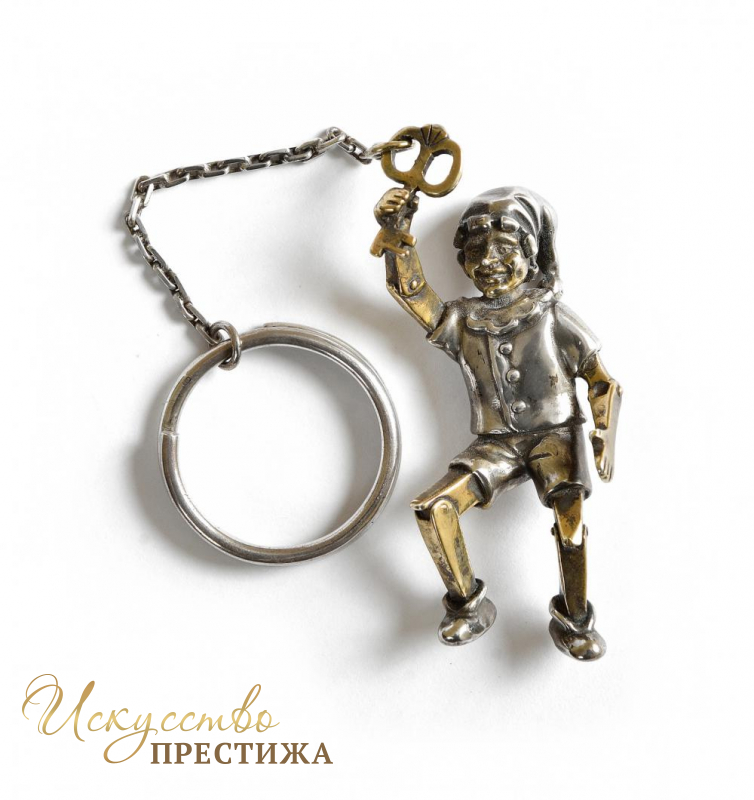 Стильный и оригинальный брелок из серебра 925 пробы с позолотой.