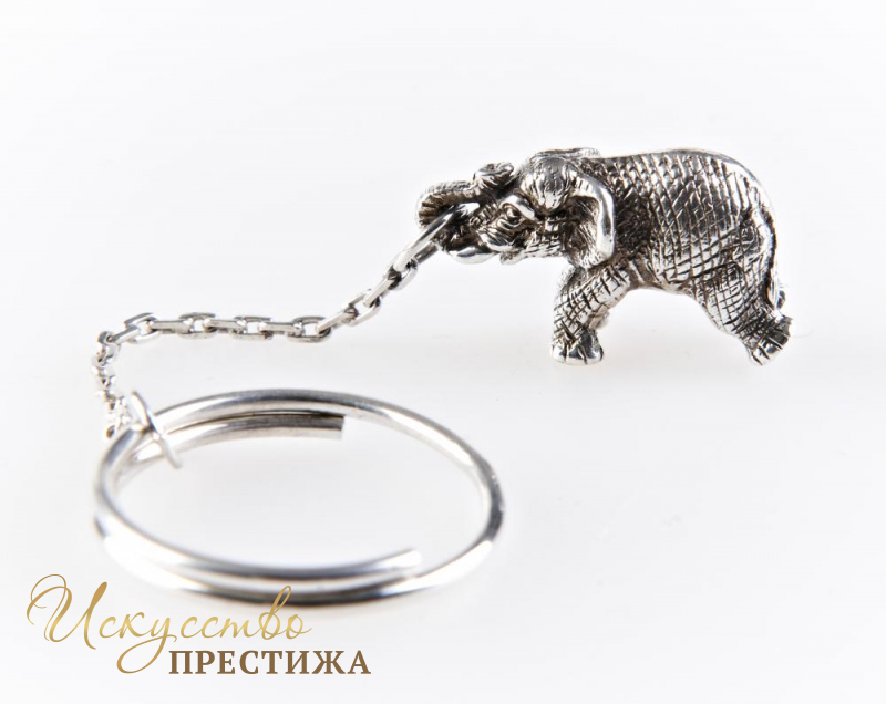 Стильный брелок из серебра в виде слона.