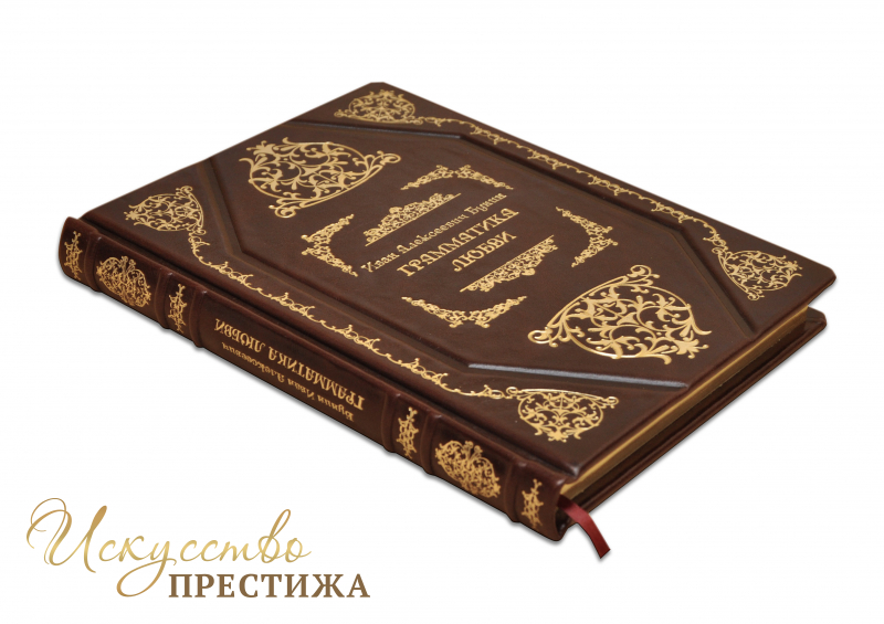 Французский цельноКожаный переплет ручной работы выполнен из натуральной кожи «Robbat Wisky» производства итальянской кожевенной фабрики «Carisma». Обложка книги декорирована комбинацией рельефного блинтового и золотого тиснения (использована фольга «Luxor 240»). Обрез книги вручную полирован и позолочен сусальным золотом.