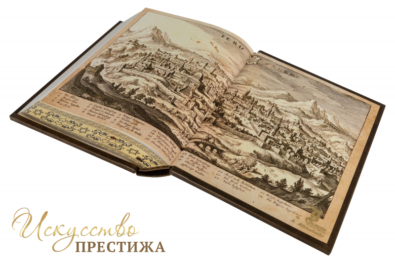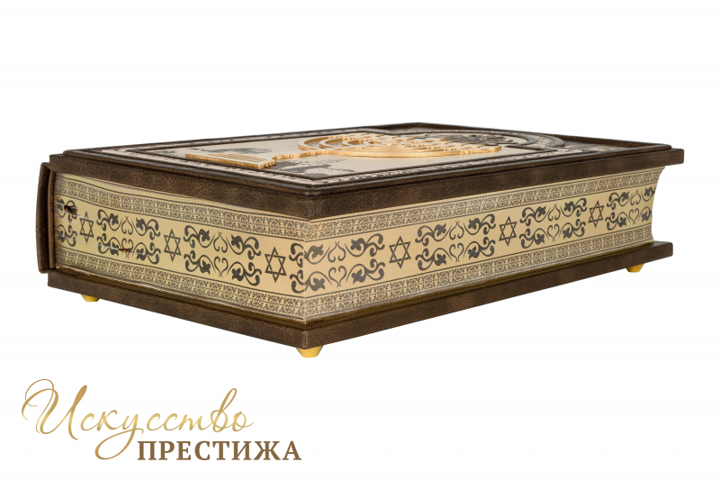 Обложка сложной архитектуры, в объемной рамке, оформлена элементами из латуни с