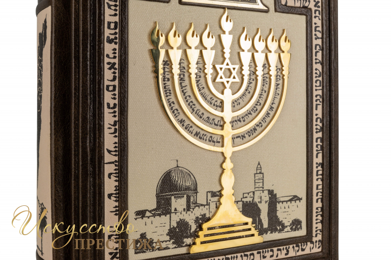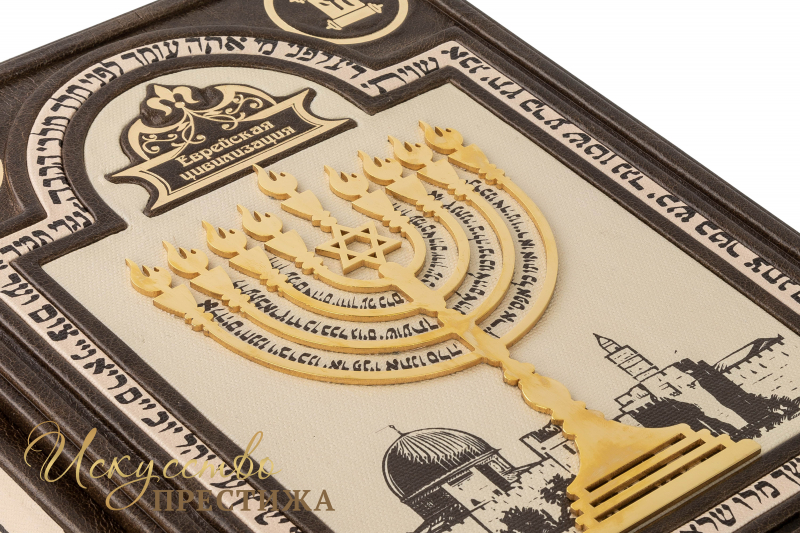 позолотой (композиция «Менора») и вставками из холста с художественной фотопечатью,