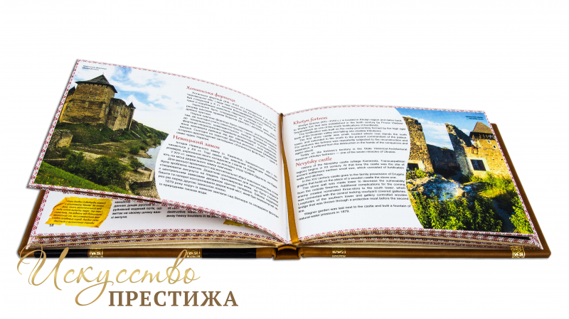 Це видання покликане стати прекрасним подарунком як для українців, що прагнуть якомога більше довідатися про археологічні пам’ятки та живописні куточки нашої батьківщини, так і для іноземців, що завітають до України. Тут представлена інформація про замки та фортеці, церкви та монастирі, національні парки та заповідники, архітектурні шедеври та природні унікальні місця. Приділено увагу українським традиціям та культурі. Українсько-англійське видання ілюстроване колоритними фотографіями, що не залишать байдужими жодного читача.