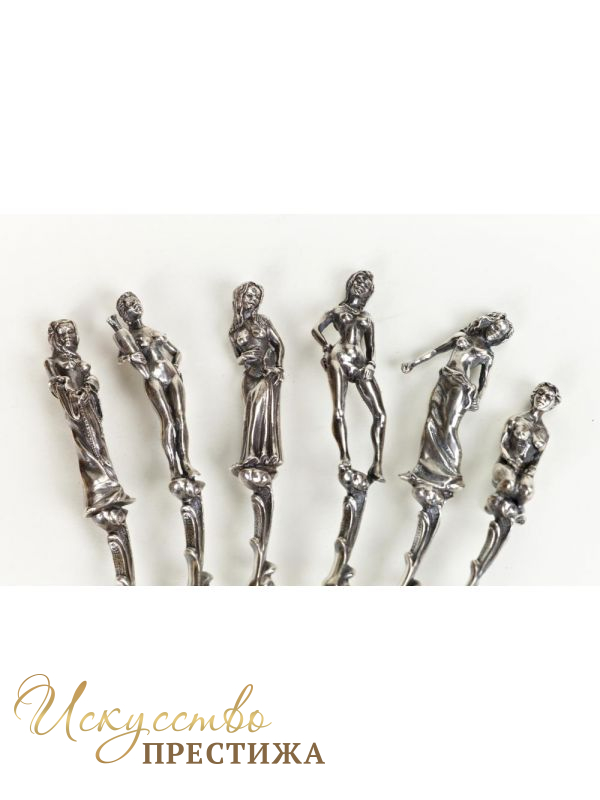Десертная серебряннная ложка с ручкой в форме девушки ( 6 вариантов). Длина 16 см.