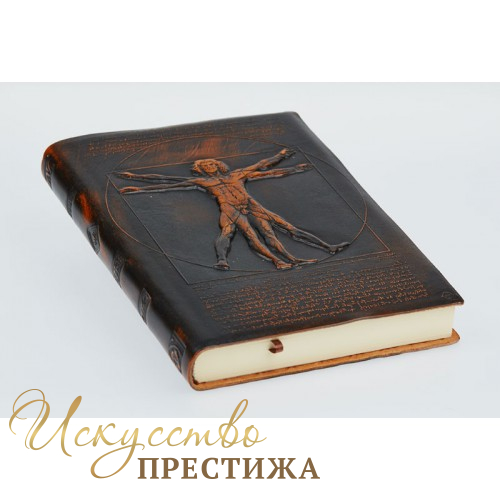 Дневник ручной работы, изготовлен из натуральной кожи. На обложке изображение картины Леонардо да Винчи «Витрувианский человек».