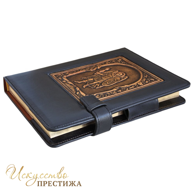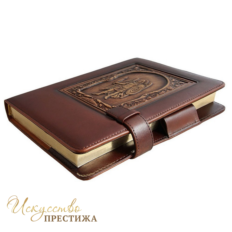 Материал обложки - кожа натуральная, лицевая сторона ежедневника с барельефной картинкой, выполненной по технологии многоуровневого конгревного тиснения на коже.