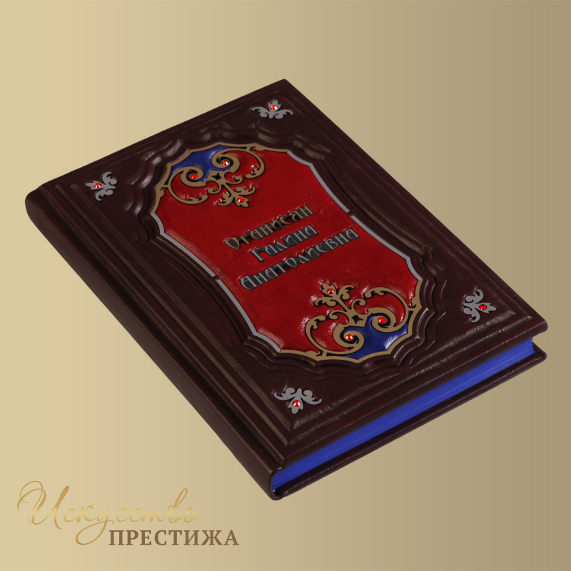 О переплете: переплет французскийцельноКожаный ручной работы на трех шнурах. Рельефные бинты на корешке. Кожа, цвет - "палисандр" (Италия). Каптал шелковый, ручного плетения. Форзац составной. Техники: рельеф и тиснение по коже.