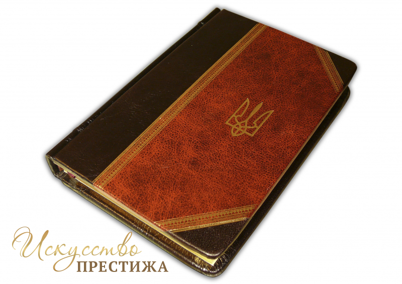 Обложка ежедневника оформлена рельефным тиснением сусальным золотом в 24 карата. Обрез полированный и посеребрен. Бумага тонированная. Отпечатано в типографии «Bruno Visconti», Италия.