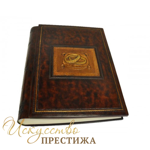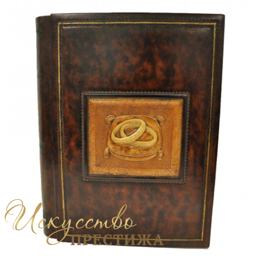 Изысканный фотоальбом из темно-коричневой кожи. Обложка украшена тиснением в виде свадебных колец. Размеры: 30x40 цена 16038 грн, 35x35 цена 16362 грн.