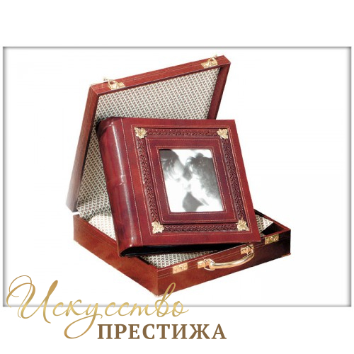 Альбом украшен плетением из кожи и чеканкой. На обложке - рамка для вашей наилучшей фотографии.