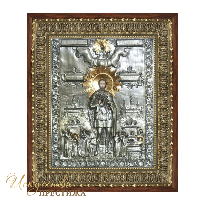 Икона Александра Невского в серебреном окладе отображает первый период жизни великого русского святого - время его великих подвигов во имя православной веры. Иконы Александра Невского очень распространены в церквях и соборах. Для многих городов Александр Невский - небесный покровитель.