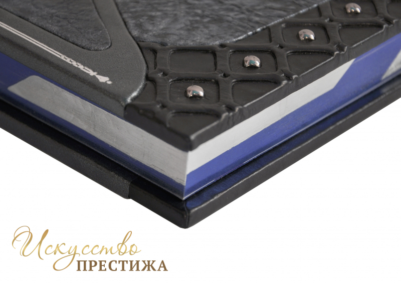 Французский составной переплет ручной работы выполнен из комбинации натуральных кож (Кожа теленка «Nero Zegna», Кожа маррокен «Patina blu», Кожа «Acciaio» производства итальянской кожевенной фабрики «Benericetti»). Обложки книг и футляр, оформлены в авторской технике декора «Кожаный витраж» , обрамлены объемными узорами ручного тиснения, рельефным серебряным тиснением, с использованием фольги «Luxor 240», никелевыми холитенами общим количеством 52 штуки. Обрез книг полирован и оформлен вручную сусальным серебром и синей паталью. Футляр устлан французским коттон - бархатом.