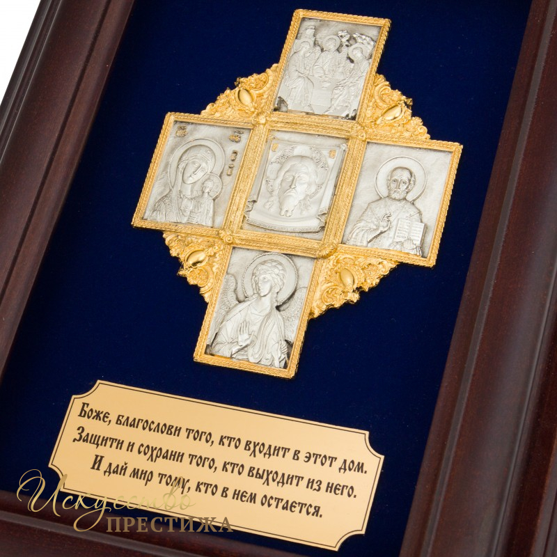 Настенная ключница "Крест с молитвой" - это оригинальный подарок родным и близким, на все случаи жизни. Ключница - это ниша, подвесная шкатулка, выполнена из натурального дерева, украшена крестом со святыми, и словами из молитвы. Настенная ключница может разместить 6 позиций ключей, что вполне хватит для всей семьи. Настенная ключница со словами из молитвы, будет оберегать Ваш дом, и сохранять тепло и веру в нем.