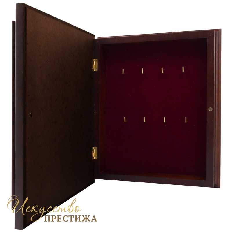 Ключница "Счастье в дом" подойдет на подарок к любому важному событию или празднику, и непременно станет оберегать и охранять домашний уют и очаг. Ключница выполнена в сочетании дерева и золотого оформления, в центре ее композиции лежит подкова декорированная узорами и украшена красивыми бордовыми камнями. Данная модель ключницы идеально разместит 8 позиций ключей. Настенная ключница - это превосходная идея оригинального подарка родным, близким, сотрудникам и друзьям.