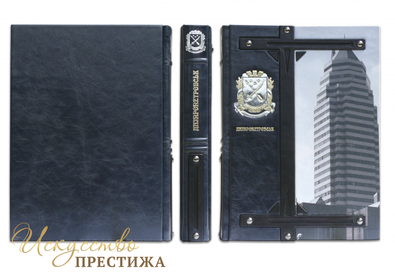 Французский составной переплет ручной работы выполнен из комбинации натуральных кож (Кожа «Nero», Кожа «Blue marble» производства итальянской кожевенной фабрики «Benericetti»). Обложка книги двухуровневая, оформлена многоуровневым тиснением: рельефным золотым и серебряным, с использованием фольги «Luxor 240». Декорирована холитенами, 8 штук, изображением на холсте. Обрез блока вручную полирован и поcеребрен сусальным серебром.