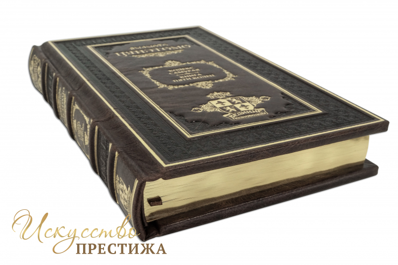 Французский цельно-кожаный переплет ручной работы выполнен из натуральной кожи (кожа «Gabinetto» производства итальянской кожевенной фабрики «Benericetti»). Обложка книги двухуровневая, оформлена многоуровневым тиснением: глубоким блинтовым и рельефным золотым, с использованием фольги «Luxor 240». Обрез вручную полирован и позолочен сусальным золотом.