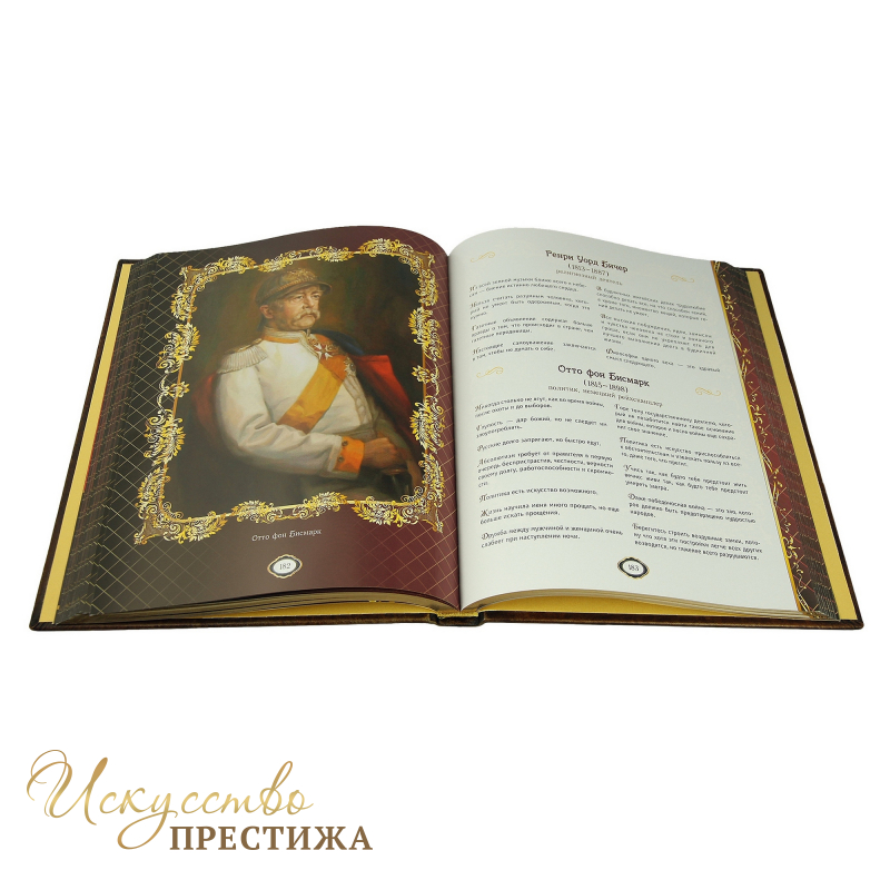 Кожаная книга Мудрость Веков является сборником кратких, но наполненных предельной четкостью и смыслом афоризмов. В этом издании вы найдёте слова Пифагора, Леонардо да Винчи, Агаты Кристи и других известных людей, чьи слова стали классикой. Всего в книге собрано 1000 уникальных афоризмов на 320 страницах.