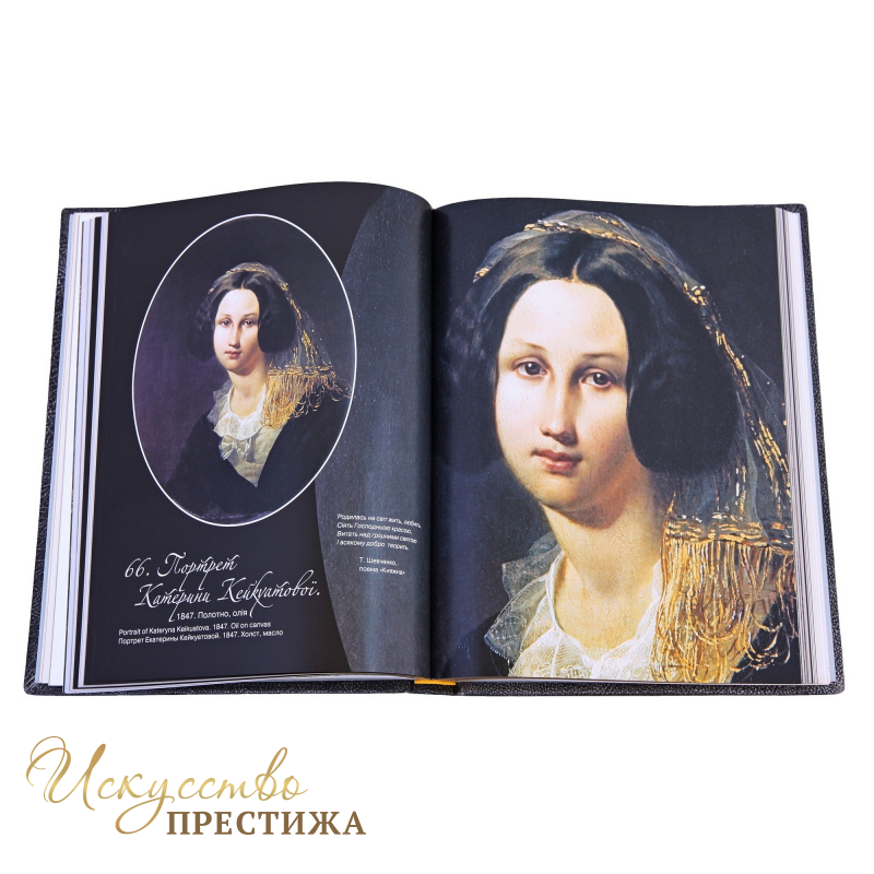 Кожаная книга Т.Шевченко. Художественное наследие– это не просто книга, а настоящий альбом, который позволяет взглянуть на великого поэта с другой стороны. Тараса Шевченко считают великим творцом стихотворений. А в этой книге вы сможете оценить, насколько хорошо он умел рисовать, как умел передавать красками на полотне тяжелые для украинского народа времена и насколько чувственными получались все произведения. За свою жизнь Тарас Григорович создал более 20 полотен и 1200 небольших графических рисунков.