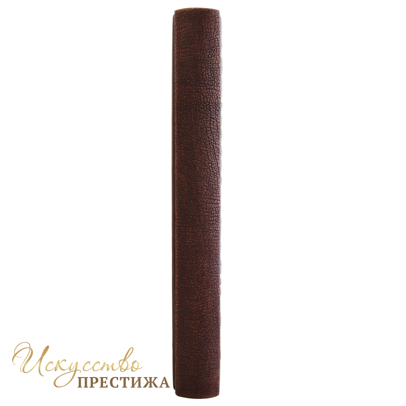 Переплет ручной работы из натуральной кожи. Конгревное тиснение (барельеф на коже) и тиснение позолоченной фольгой. Тонировка кожи.