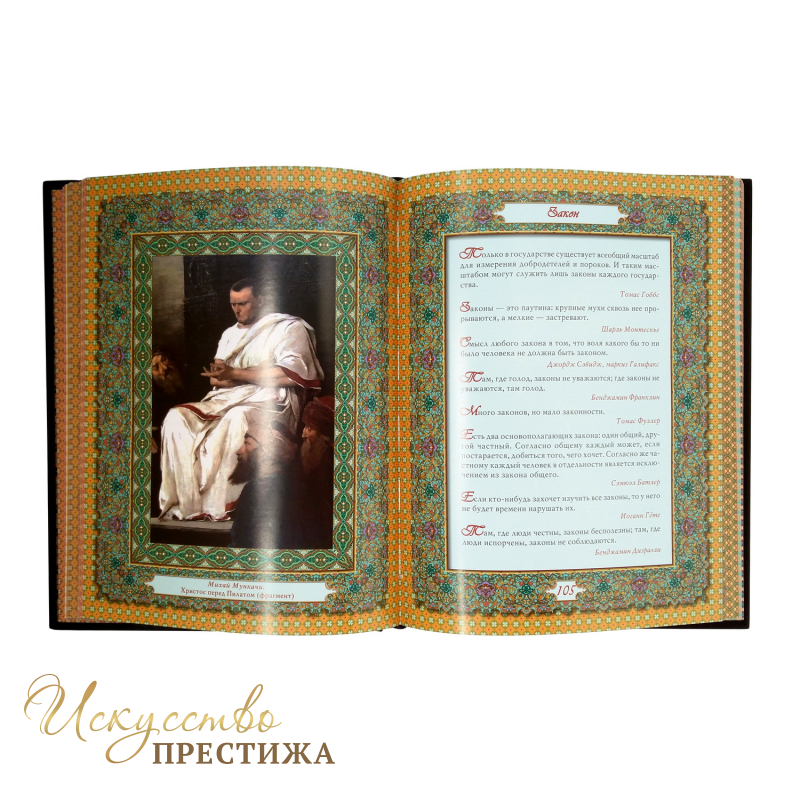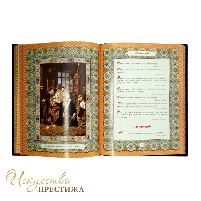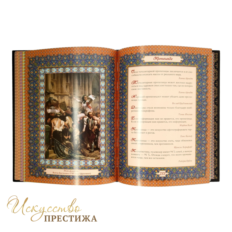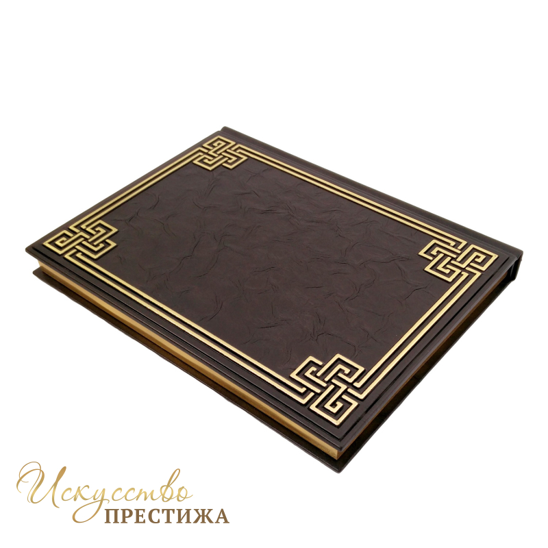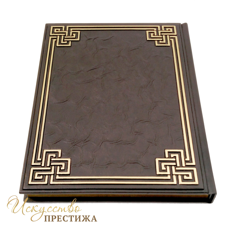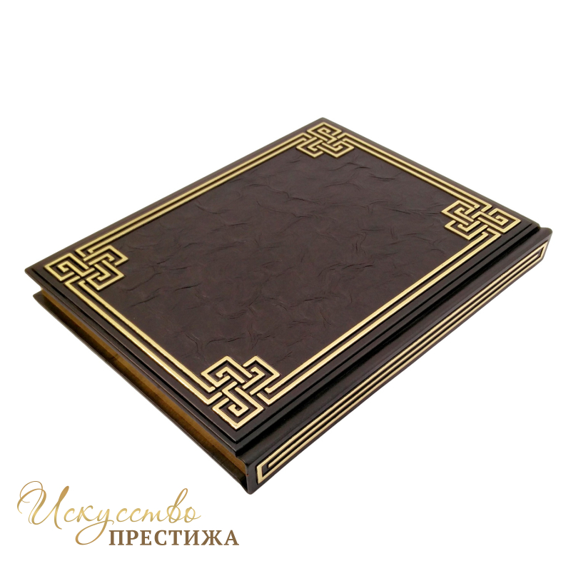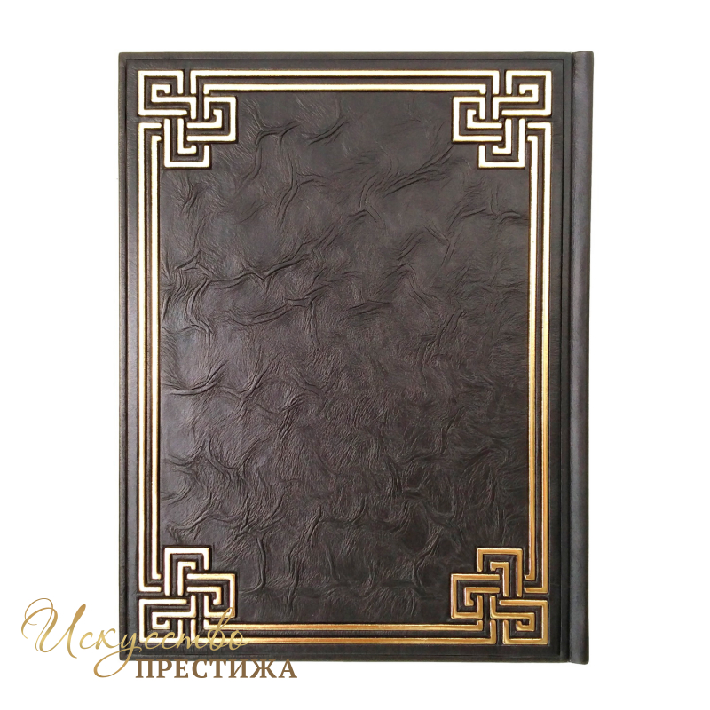 Переплет французский цельно-кожаный, ручной работы. Обрез полированный цвет золото. Цвет кожи черная (Италия). Бумага полноцвет мелованная с иллюстрациями.