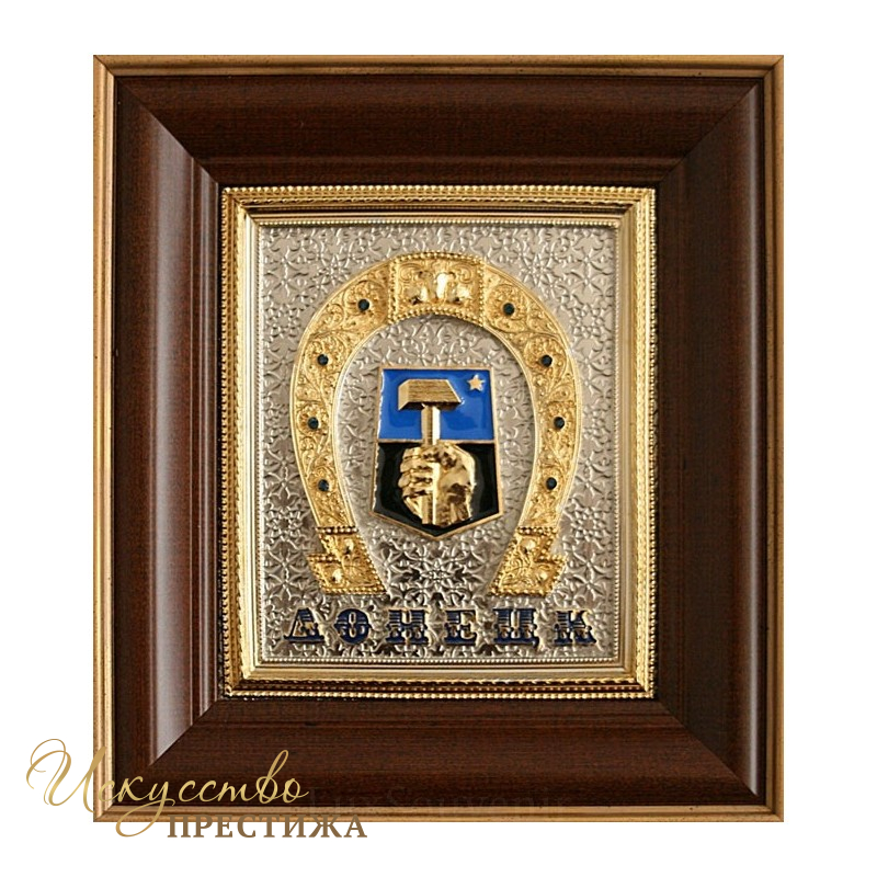 Основа сувенира: подкова - символ счастья и герб Донецка. Хороший памятный подарок гостям города Донецка.