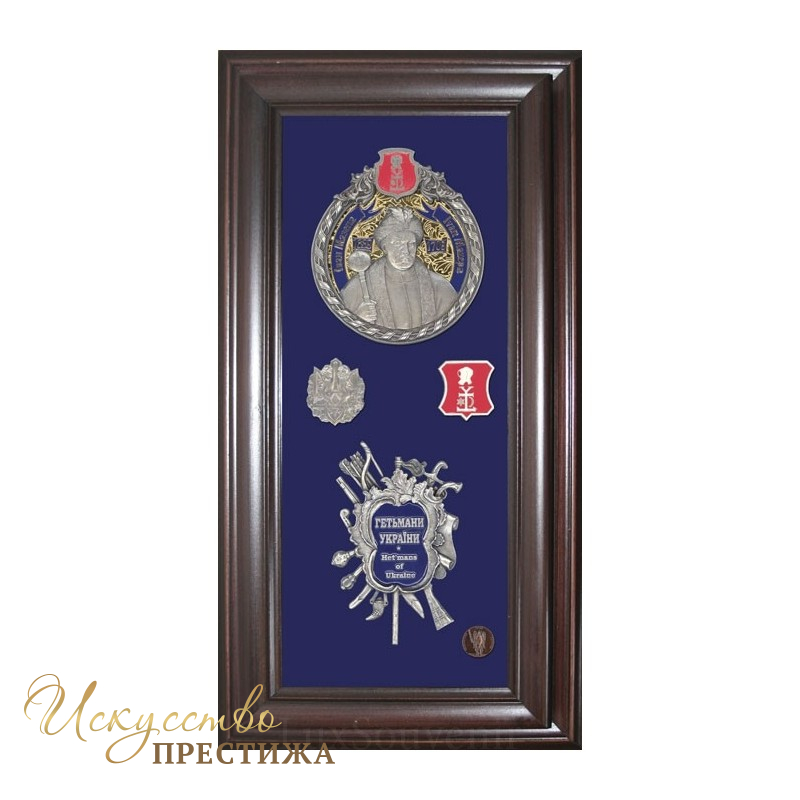 Портреты гетманов Украины, собранные в композиции подарка, выполнены скульпторами С. Силенко и А. Зигурой по самым достоверным иконографическим материалам. Гравёрно-моделирующие работы композиции - В. Жернова. Художественный картуш работы - С. Силенко.