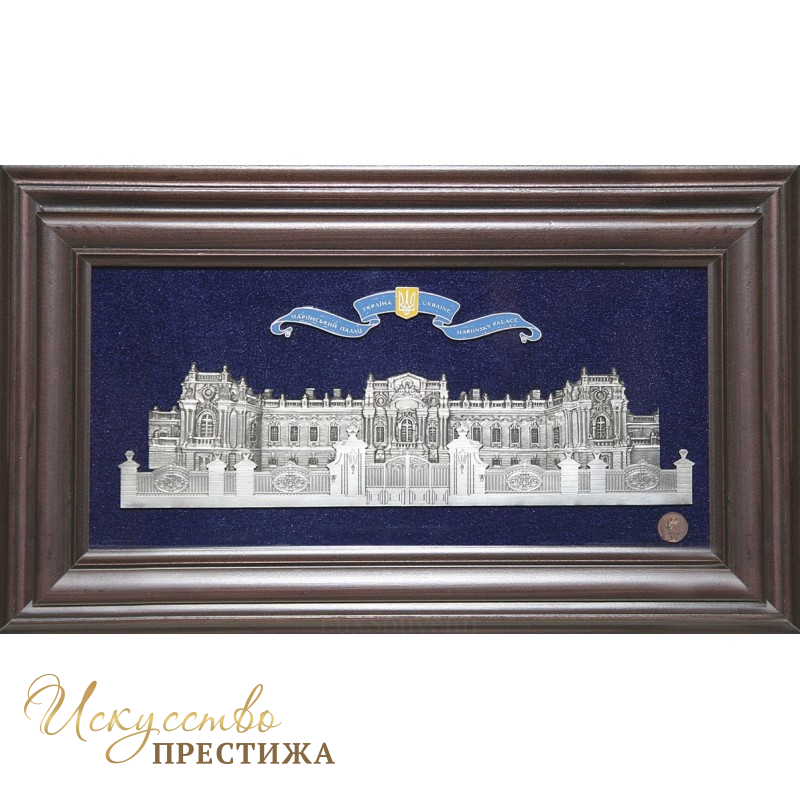 В сувенире 'Мариинский дворец' отражено историческое сооружение - живописный дворец, который расположен на высоком правом берегу реки Днепр в Киеве. Дворец является официальной резиденцией Президента Украины и расположен рядом с домом Верховной Рады.