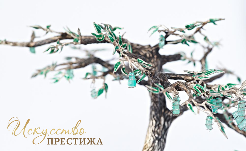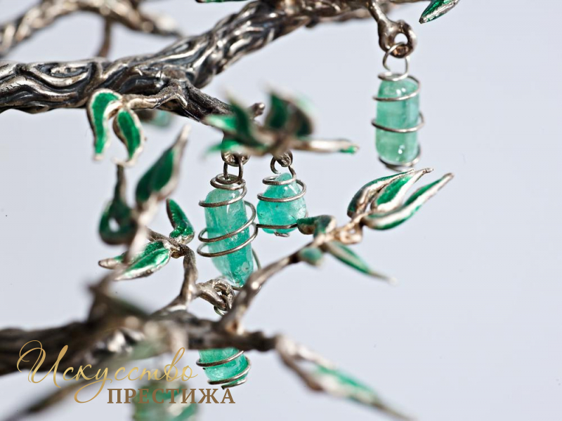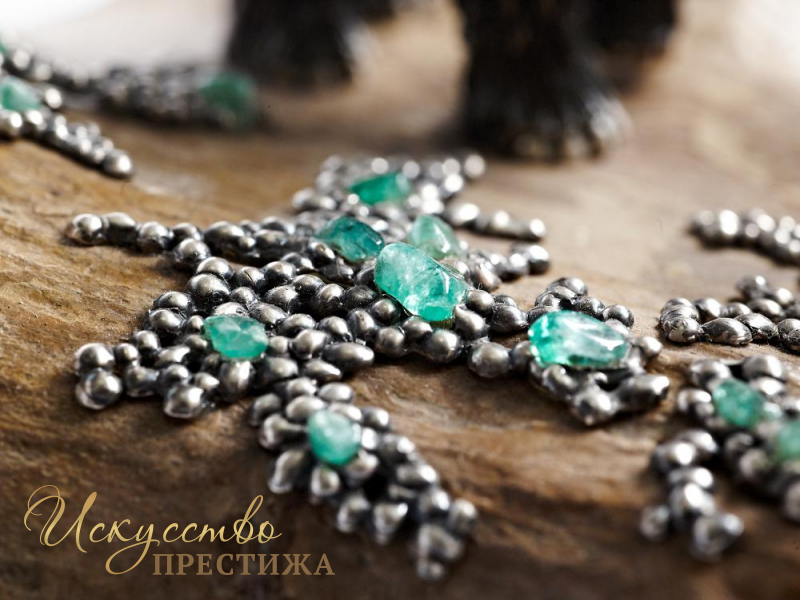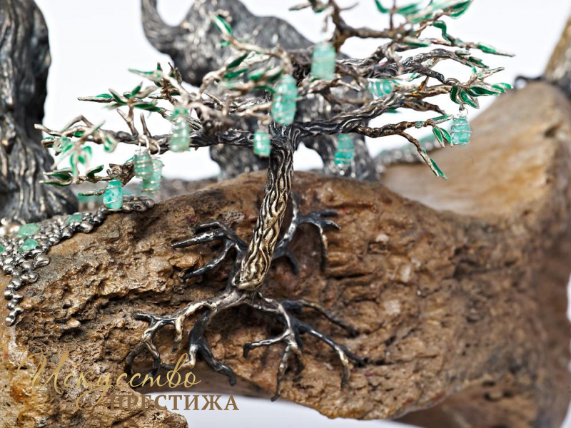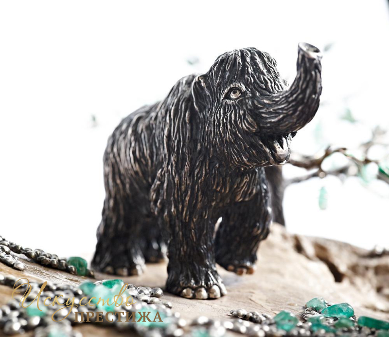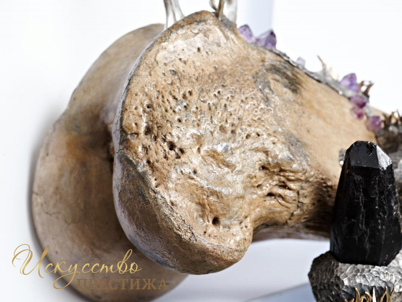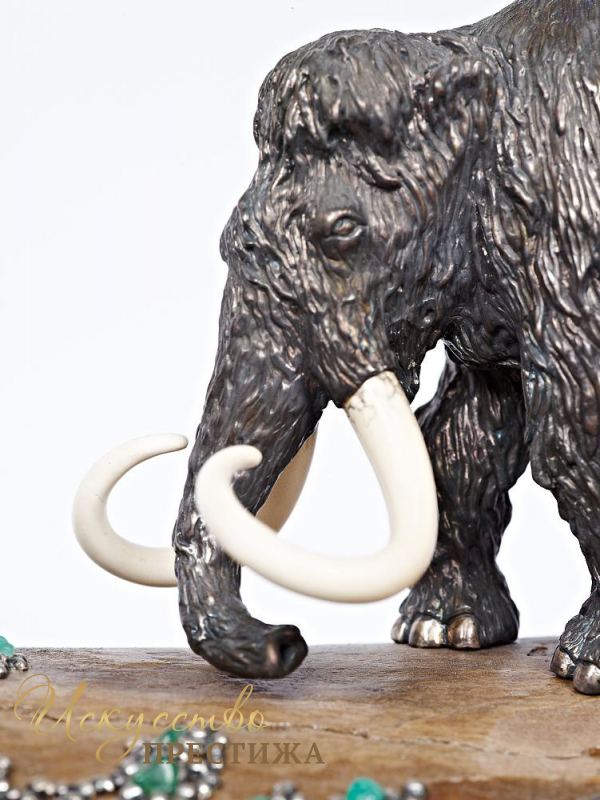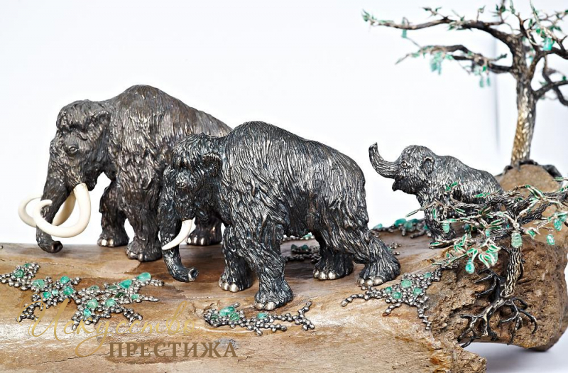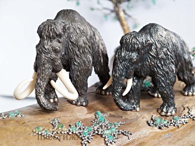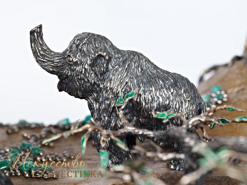Эксклюзивная композиция из серебра с элементами позолоты на кости мамонта с натуральными вставками.