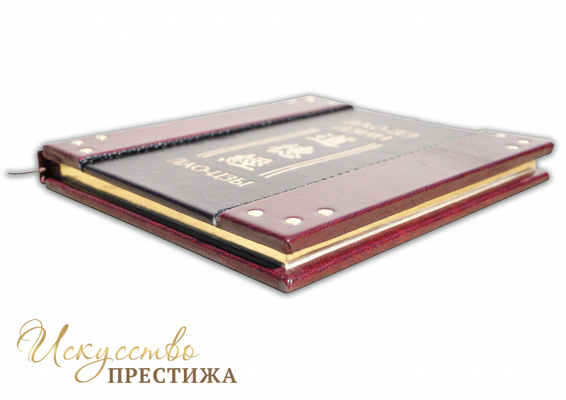 Французский составной переплет ручной работы выполнен из комбинации натуральных кож (Кожа «Marma Rossa»; Кожа «Plonge Brown» производства итальянской кожевенной фабрики «Claudio»). Обложка книг оформлена рельефным золотым тиснением, латунными холитенами (цвет «Gold» количество 12 штук), плетенным Кожаным шпагатом. Тираж 15 номерных комплектов. Сертификат. В комплекте бархатный чехол.