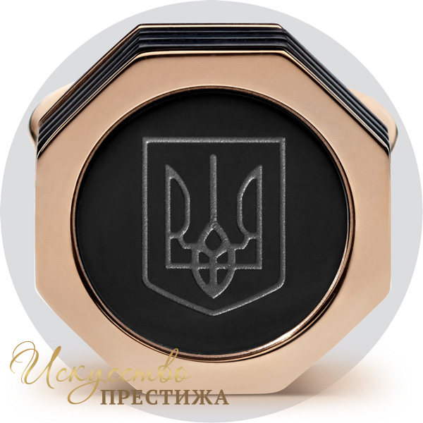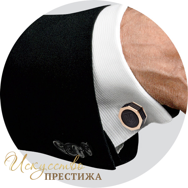 Лицевая часть запонки украшена изящной гравировкой в форме трезубца, Малого герба Украины. Обратную сторону украшает логотип Montegrappa. Запонки представлены в двух вариантах исполнения: с покрытием из розового золота и с черным ониксом.