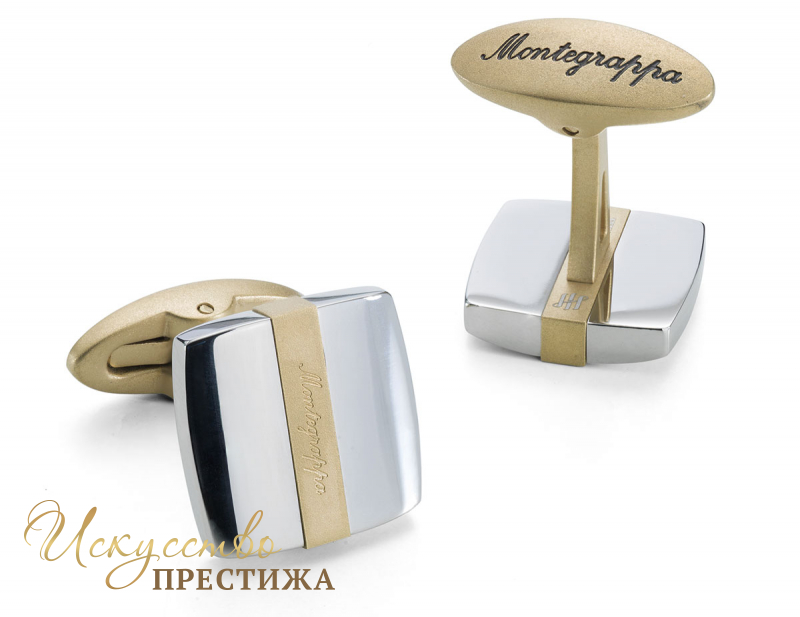 Описание товара Montegrappa Запонки Quadro Cufflinks, Steel & IP Yellow Gold