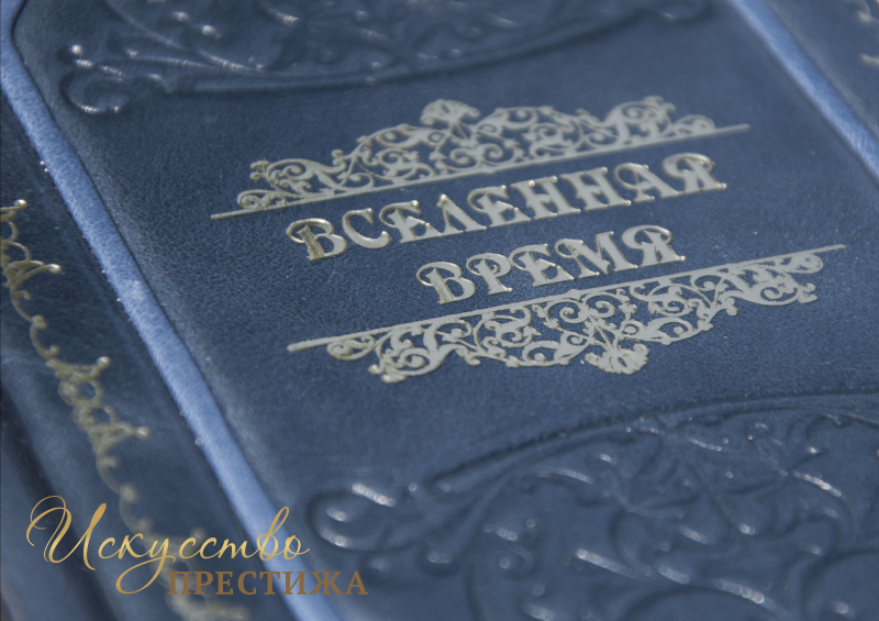 Французский переплет ручной работы, выполнен из комбинации натуральной кожи (Кожа «Robbat Blu», Кожа «Cielo» производства итальянской кожевенной фабрики «Benericetti»). Обложка книги и футляр - ложемент, оформлены многоуровневым тиснением, глубоким блинтовым и рельефным золотым, с использованием фольги «Luxor 240». Внутреннее убранство футляра устлано натуральным бархатом «Morbidezza». Обрез книги полирован и окрашен вручную (цвет «Bronze»).