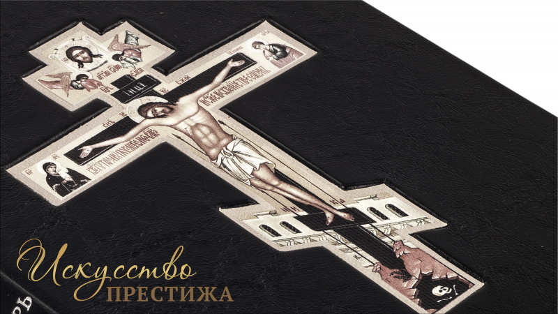 Цельнокожанный переплет «Брадель», ручной работы, изготовлен из натуральной кожи «Robbat Nero» производства итальянской кожевенной фабрики «Carisma». Обложка книги оформлена репродукцией на холсте, декорирована серебряным тиснением, использована фольга «Luxor 240», застегивается на молнию. Обрез книги вручную полирован и посеребрен.