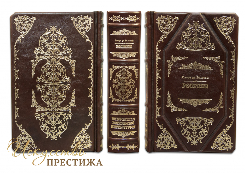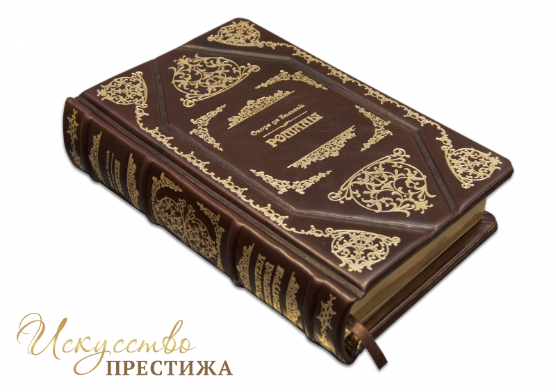 Французский цельноКожаный переплет ручной работы выполнен из натуральной кожи «Robbat Wisky» производства итальянской кожевенной фабрики «Carisma». Обложка книги декорирована комбинацией рельефного блинтового и золотого тиснения (использована фольга «Luxor 240»). Обрез книги вручную полирован и позолочен сусальным золотом.