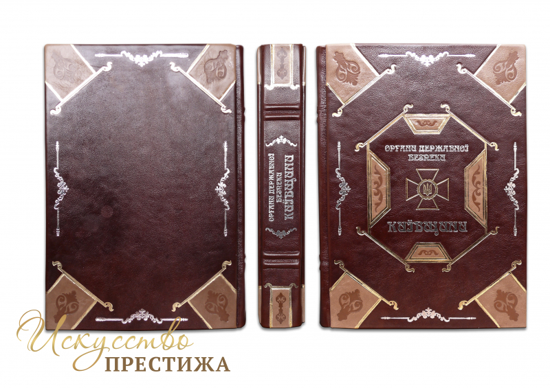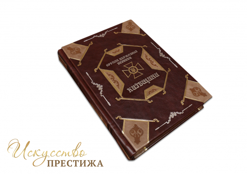 Французский составной переплет ручной работы выполнен из комбинации натуральных кож (Кожа теленка «Robbat Cognac», Кожа теленка «Robbat Parle»).Обложка книги оформлена рельефным золотым и серебряным тиснением, с использованием фольги «Luxor 240», и глубоким блинтовым тиснением. Обрез блока вручную полирован и позолочен сусальным золотом.