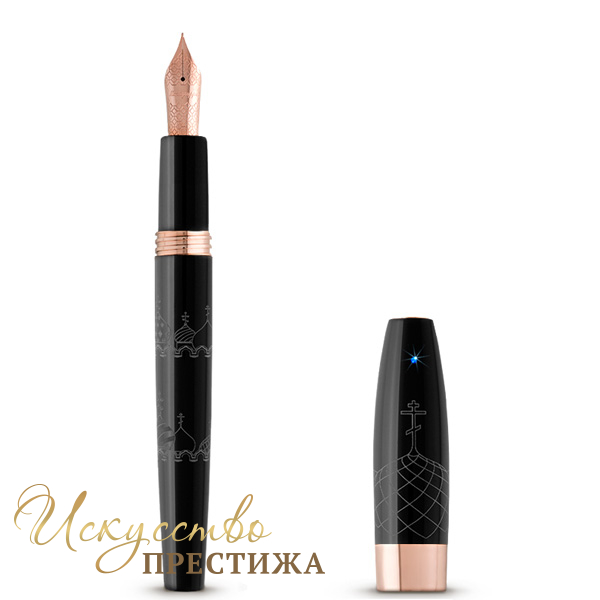 Корпус роскошной ручки Domes изготовлен из драгоценной смолы черного цвета и украшен традиционными куполами, венчающими храмы великих столиц. Великолепная композиция подчеркнута контрастными деталями, покрытыми розовым золотом, и лаконичным сверкающим цирконом на колпачке.