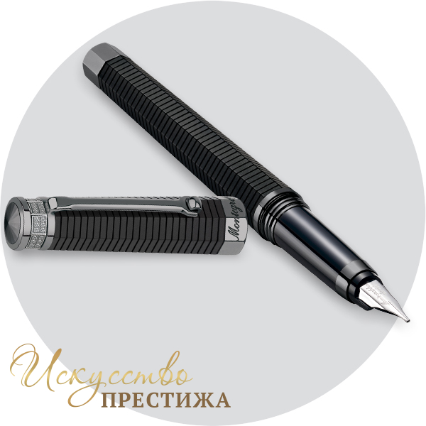 Роскошная перьевая ручка изготовлена из драгоценной смолы черного цвета. Безукоризненная восьмиугольная форма подчеркнута трёхмерным узором, созданным благодаря серии линий на коническом корпусе. Изящные детали покрыты рутением. Колпачок оснащен удобным зажимом с вращающейся сферой. Элегантная вершина инкрустирована 48 сверкающими кристаллами Swarovski Zirconia. Выгравированный логотип бренда украшает центральное кольцо. Завершает композицию изысканное перо из белого золота в 18 карат.