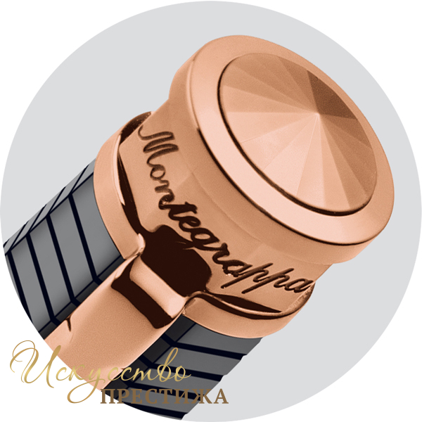 Роскошная перьевая ручка изготовлена из драгоценной смолы черного цвета. Безукоризненная восьмиугольная форма подчеркнута трёхмерным узором, созданным благодаря серии линий на коническом корпусе. Изящные детали покрыты розовым золотом. Колпачок оснащен удобным зажимом с вращающейся сферой. Элегантную вершину колпачка опоясывает выгравированный логотип бренда. Завершает композицию изысканное перо из розового золота в 18 карат.