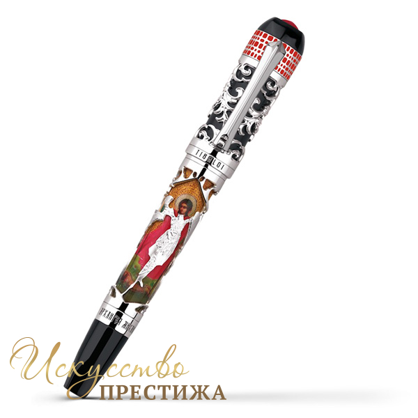 The Tibaldi Sanctus Michael Archangelus — лимитированная коллекция старейшего итальянского производителя письменных инструментов компании Tibaldi, прославляющая Архангела Михаила. Источником вдохновения для создания ручки, стала икона, сотворенная мастером из Палеха, находящаяся под влиянием культуры Русского модернизма. Архангел Михаил изображен на золотом фоне, имитирующем мозаику. Крылья Архангела, его тело и доспехи вырезаны из драгоценного металла, обработанного вручную. Богатая ажурная резьба украшает корпус и позволяет увидеть все многообразие цветовой гаммы классической иконы. Изображение Архангела также выгравировано на пере из 18К золота, покрытого родием, а его ангельские крылья и доспехи выделены 18К желтым золотом.