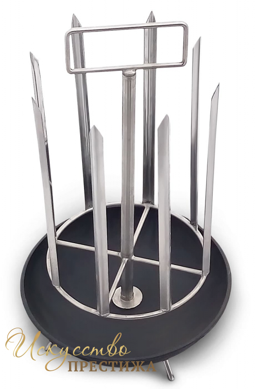 Приспособление «Пики с жаровней» дают возможность приготовления нескольких блюд одновременно. Вертикально размещенные пики в этом приспособлении предназначены для приготовления в основном разнообразных мясных блюд. Стекающий жир попадает в размещенную снизу жаровню, где можно запекать картошку в мундирах.