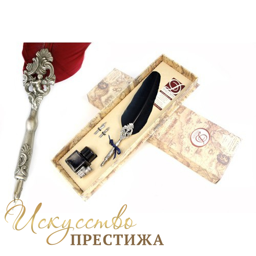 Перо, чернильница с подставкой под перо, 2 сменных пера.