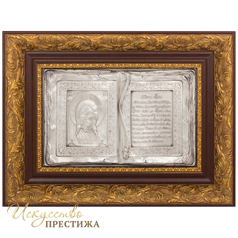 Подарок с молитвой Отче Наш выполнен методом гальванопластики.Покрытие-чистое Серебро 925-й пробы.Дополнительное покрытие патинирующим составом и воском.Подарите близким Вам людям предмет, который наполнит дом светом духовности и спокойствия.