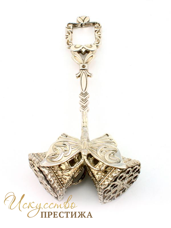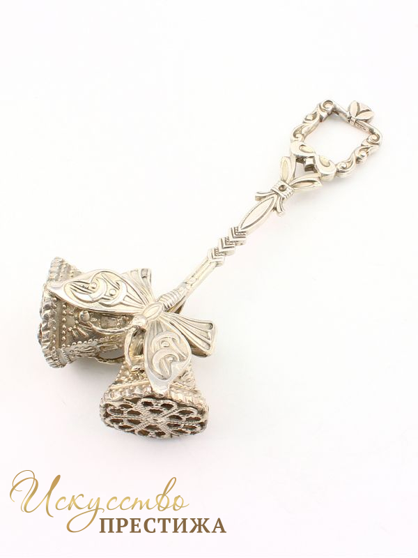 Красивая погремушка из серебра 925 пробы с колокольчиками.