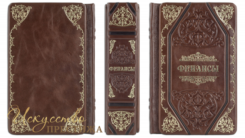 Французский составной переплет ручной работы, выполнен из комбинации натуральных кож (Кожа «Grash», Кожа «Vetro grigio» производства итальянской кожевенной фабрики «Benericetti»). Обложка книг и футляр-ложемент оформлены многоуровневым тиснением - глубоким блинтовым и рельефным золотым, с использованием фольги «Luxor 240», внутреннее убранство футляра устлано парчой «Marrone reaper». Обрез книг полирован и окрашен вручную (цвет «Bronze»). Парчовый чехол.