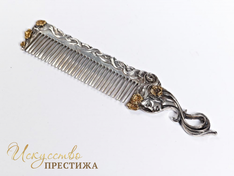 Шикарная серебряная расчёска с позолотой, подарок для настоящей принцессы!