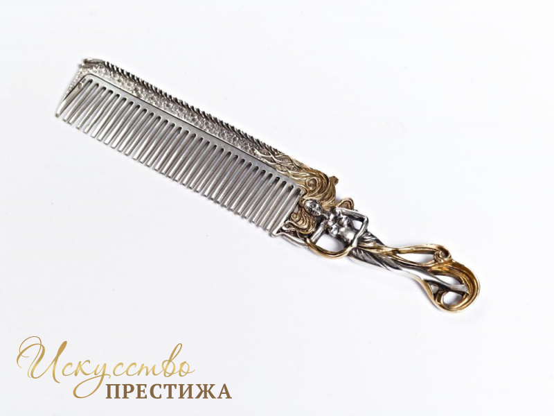 Серебряная расчёска с ручкой в виде девушки