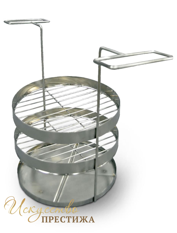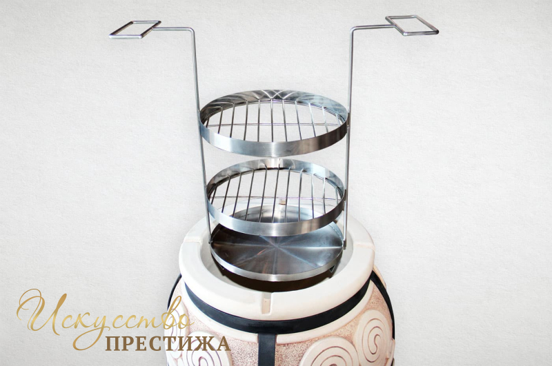 Это приспособление как вариант решетки одноярусной с поддоном для расширения количества приготовляемой пищи. В отличии от решетки одноярусной с поддоном, в этом комплекте применяют две решетки, одна над другой, ниже поддон для жира. Так же предназначена для приготовления мяса, рыбы, колбас, овощей, жаркого в горшочках и других блюд.
